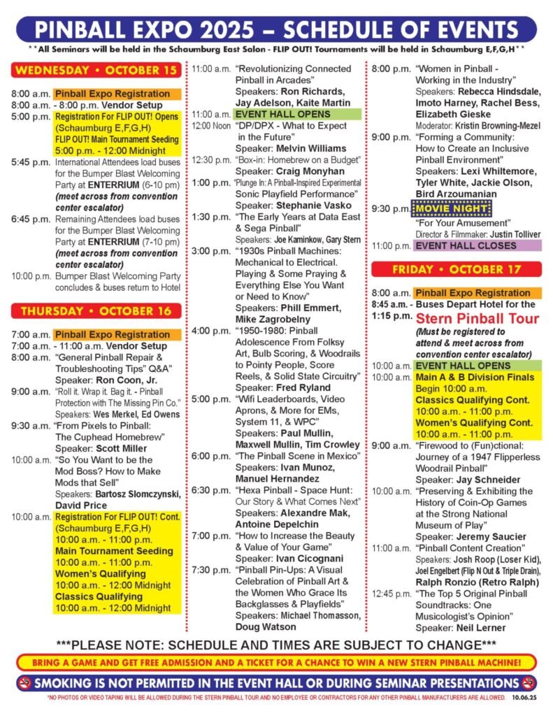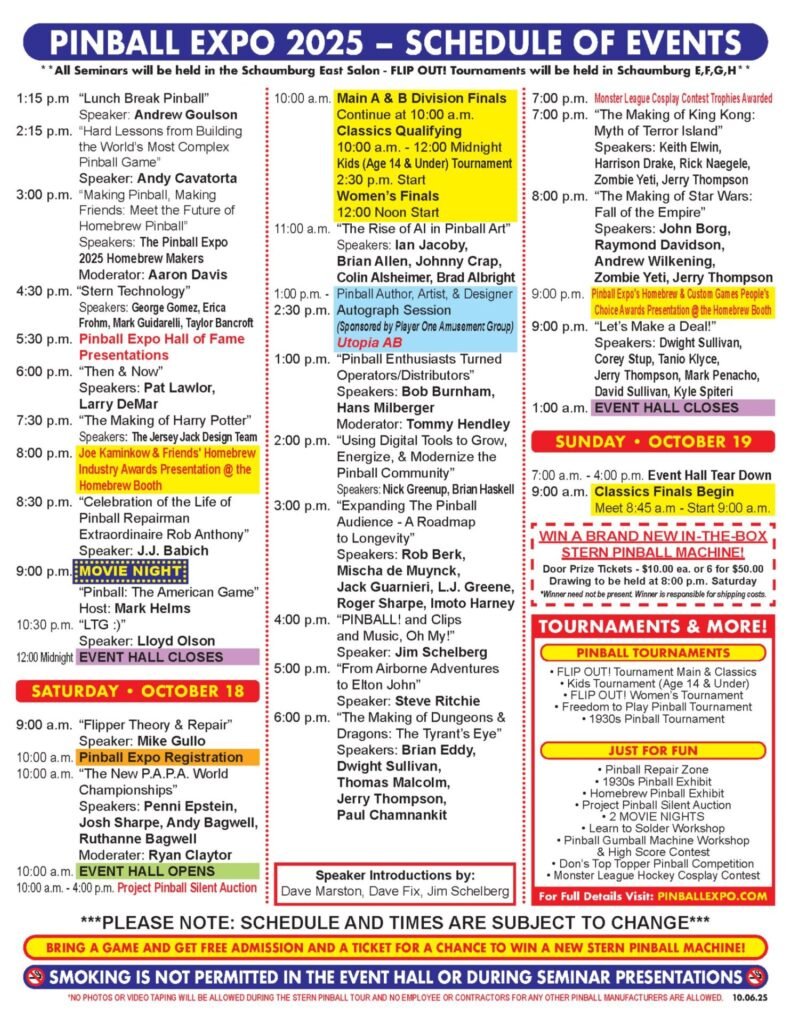 La liste de toutes les sesions prévues pendant Pinball Expo 2025 :