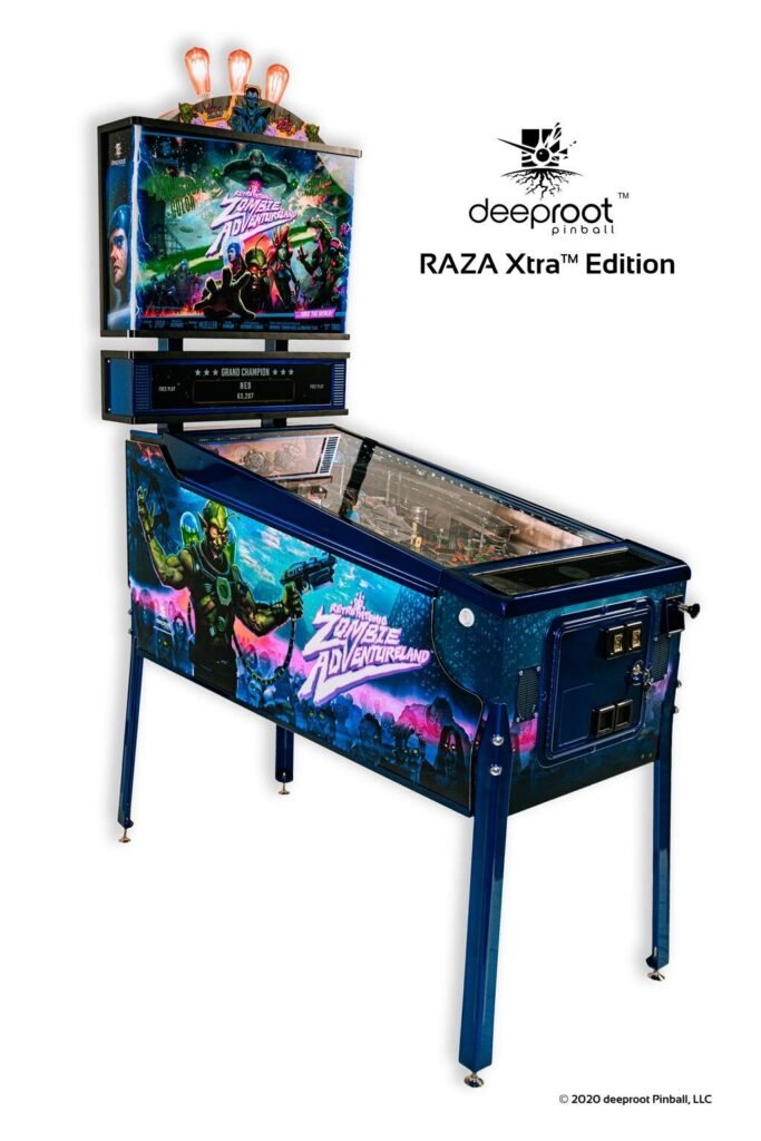 Dutch Pinball Exclusive prévoit de produire 333 RAZA, soit moins que les 500 exemplaires d’Alice prévus. RAZA sera équipé d’un topper interactif et animatronique, vendu séparément. Seuls les joueurs qui commandent un topper lors de la commande de leur jeu pourront l’obtenir. DPX a apporté plusieurs modifications à la géométrie du jeu, notamment au niveau des rampes, et a ajouté des aimants pour améliorer les performances de tir par rapport à la version Deeproot. La machine sera même équipée de l’écran interactif Pinbar controversé que Deeproot avait intégré aux lockbars de ses machines. L’écran du RAZA de DPX sera situé sur l’apron du jeu plutôt que sur la lockbar et ne sera pas tactile. Les joueurs utiliseront les boutons du flipper pour le contrôler.