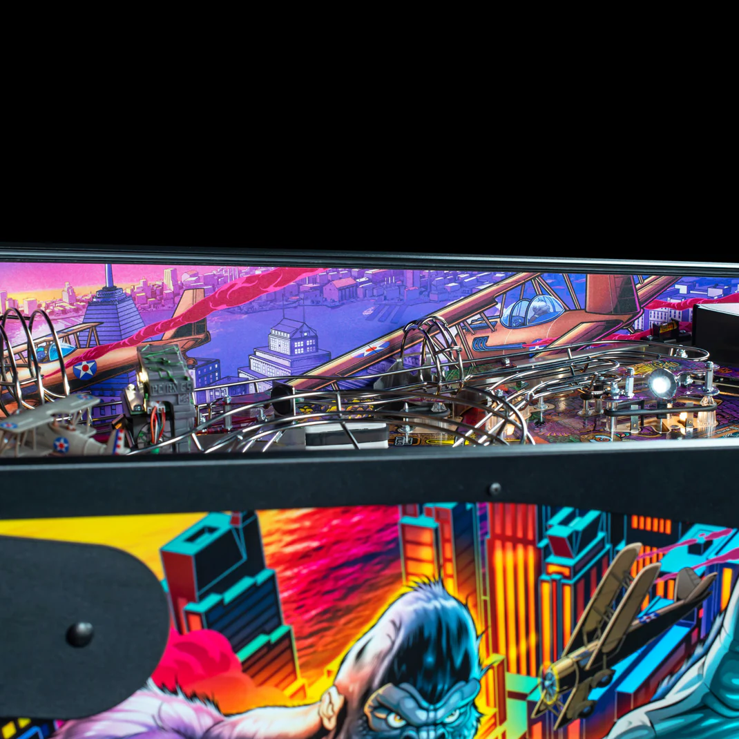 On commence avec Stern Pinball qui a dévoilé la gamme officielle d’accessoires pour son flipper Kind Kong Myth of Terror Island. Les accessoires incluent un topper avec un King Kong animatronique, 75 lumières RVB et des illustrations dessinées à la main par Greg Freres, des art blades, un shooter rod et des side armors.