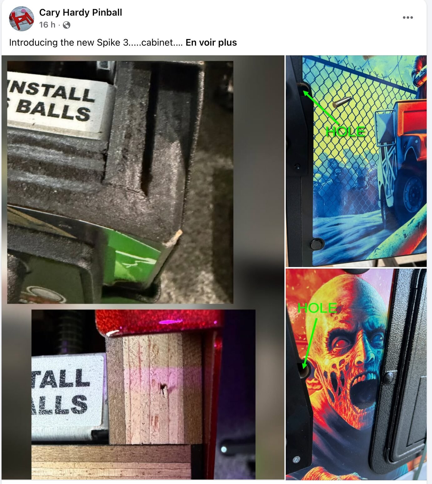 Le nouveau système Space 3 est assez « surprenant » en terme de design puisque le processeur intégré sur des carte-mères basées sur un RaspberryPi n’auraient pas de système de refroidissement, il y a simplement une plaque en métal avec le logo Spike 3 posé sur celui-ci sans son même un peu de pâte thermique pour aider à dissiper la chaleur – est-ce la source du problème ? Stern va-t-il mettre en place un système de refroidissement d’autant plus que la backbox intègre maintenant un écran plus grand et qui donc dissipe plus de chaleur dans celle-ci… le temps le dira. - L’autre polémique en cours, c’est celle des changements fait sur les caisses des nouvelles machines Stern avec des photos qui commencent à circuler largement (cf ci-dessus) et qui montrent le changement de bois de ces « cabinets ». Il semblerait que Stern ait fait des économies en passant de plaque de bois de type contreplaqué – « plywood » en anglais – à du MDF…. La polémique enfle ces dernières heures sur Internet à tel point que cette nuit George Gomez a participé à une interview en live avec Cary Hardy pour essayer de faire du « damage control ».