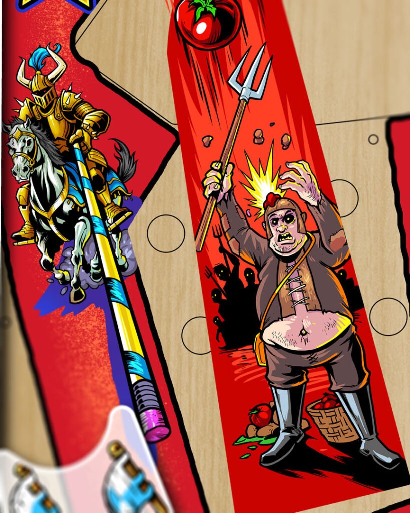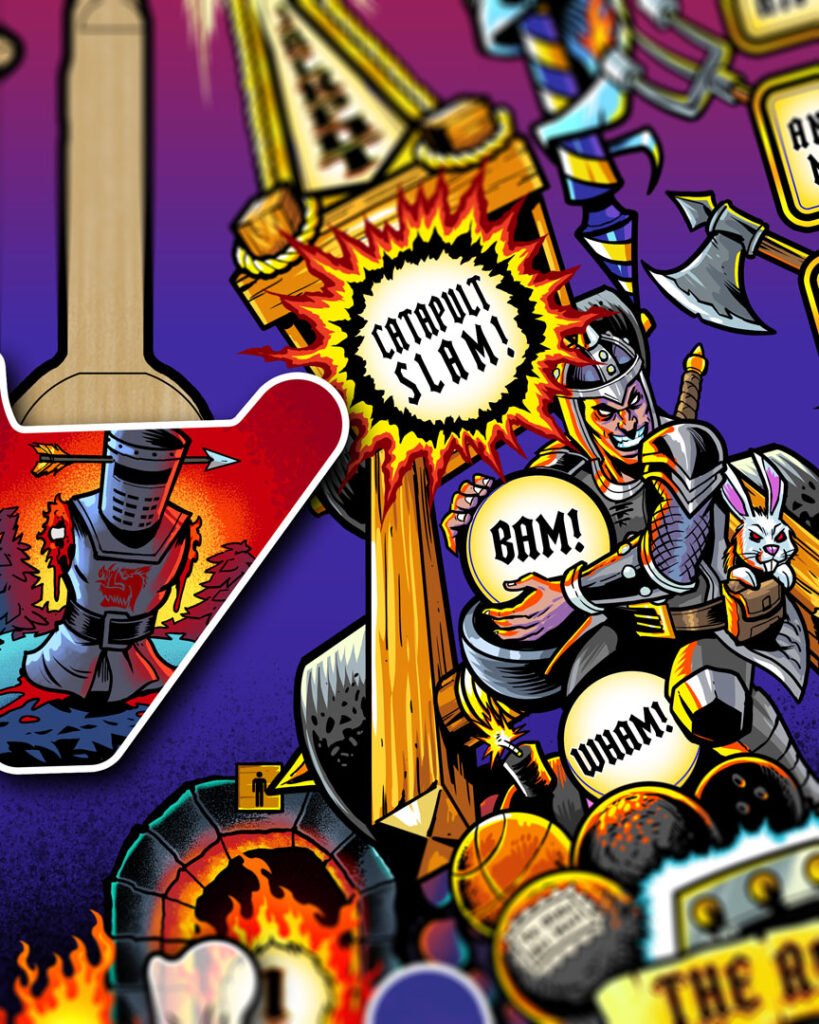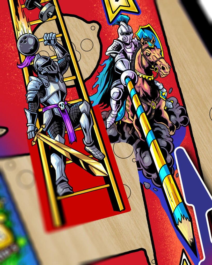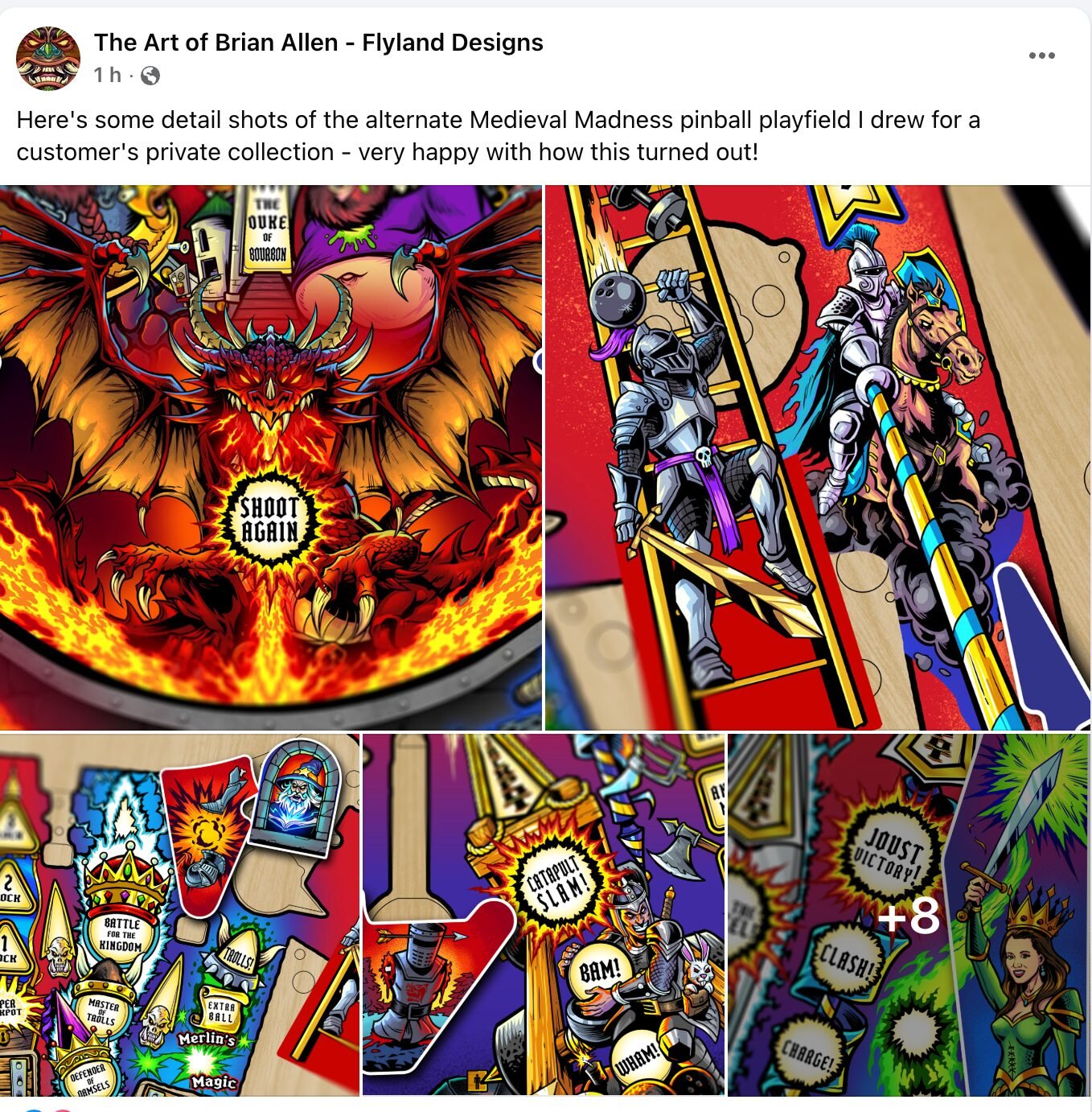 Brian Allen, avec son facebook dédié à ses créations a publié il y a 2 jours, une superbe création qu’il a réalisé pour un collectionneur autour de Medieval Madness, quand on voit la qualité et le style sur ce playfield, on a envie que cet artiste soit plus impliqué dans l’artwork de nos flippers !