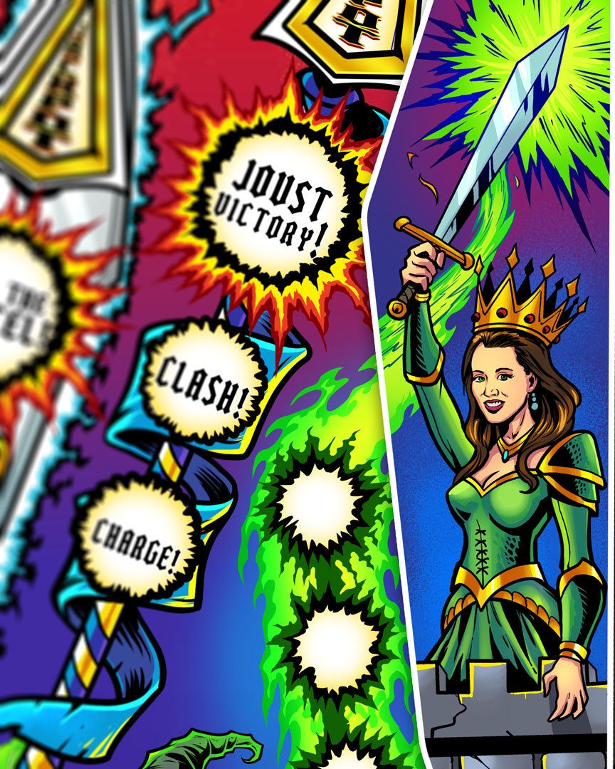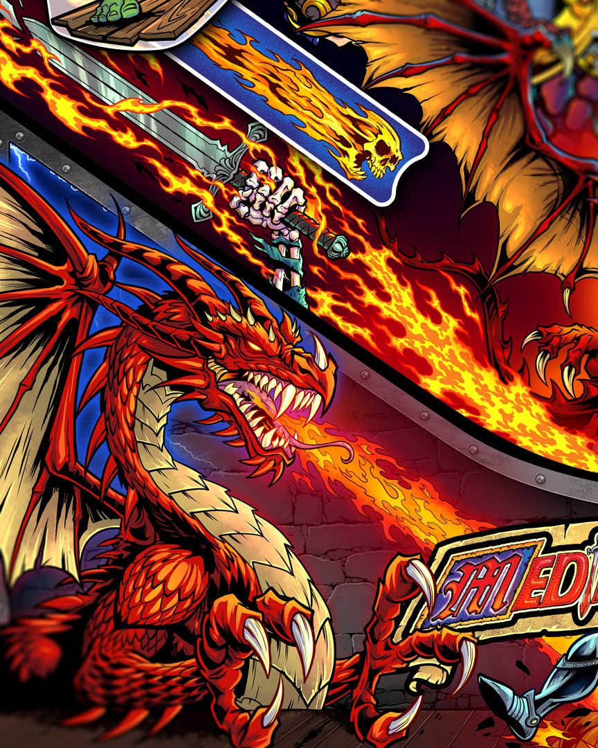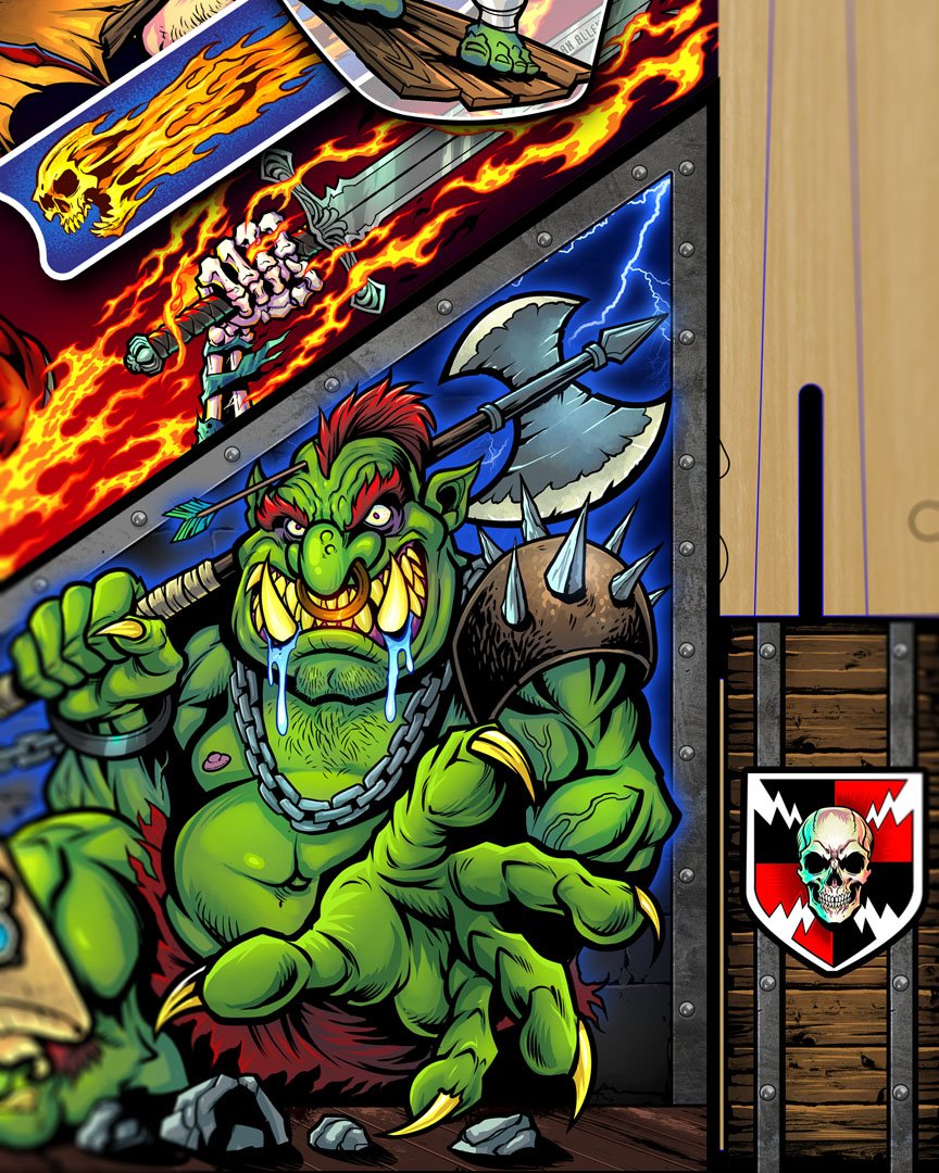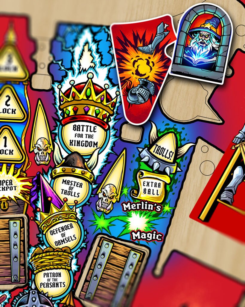 Brian Allen, avec son facebook dédié à ses créations a publié il y a 2 jours, une superbe création qu’il a réalisé pour un collectionneur autour de Medieval Madness, quand on voit la qualité et le style sur ce playfield, on a envie que cet artiste soit plus impliqué dans l’artwork de nos flippers !