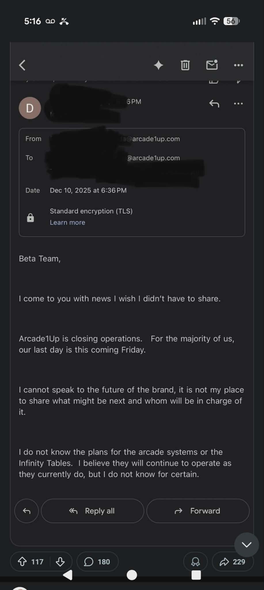 Pas tout à fait du flipper comme on l’entend chez les passionnés, mais la société Arcade1Up, fabricant de bornes d’arcade et de flipper vidéos, fermerait ses portes. Cette semaine, quelqu’un a partagé sur Reddit ce qui semble être un courriel interne à Arcade1Up, confirmant apparemment la cessation d’activité de la société.