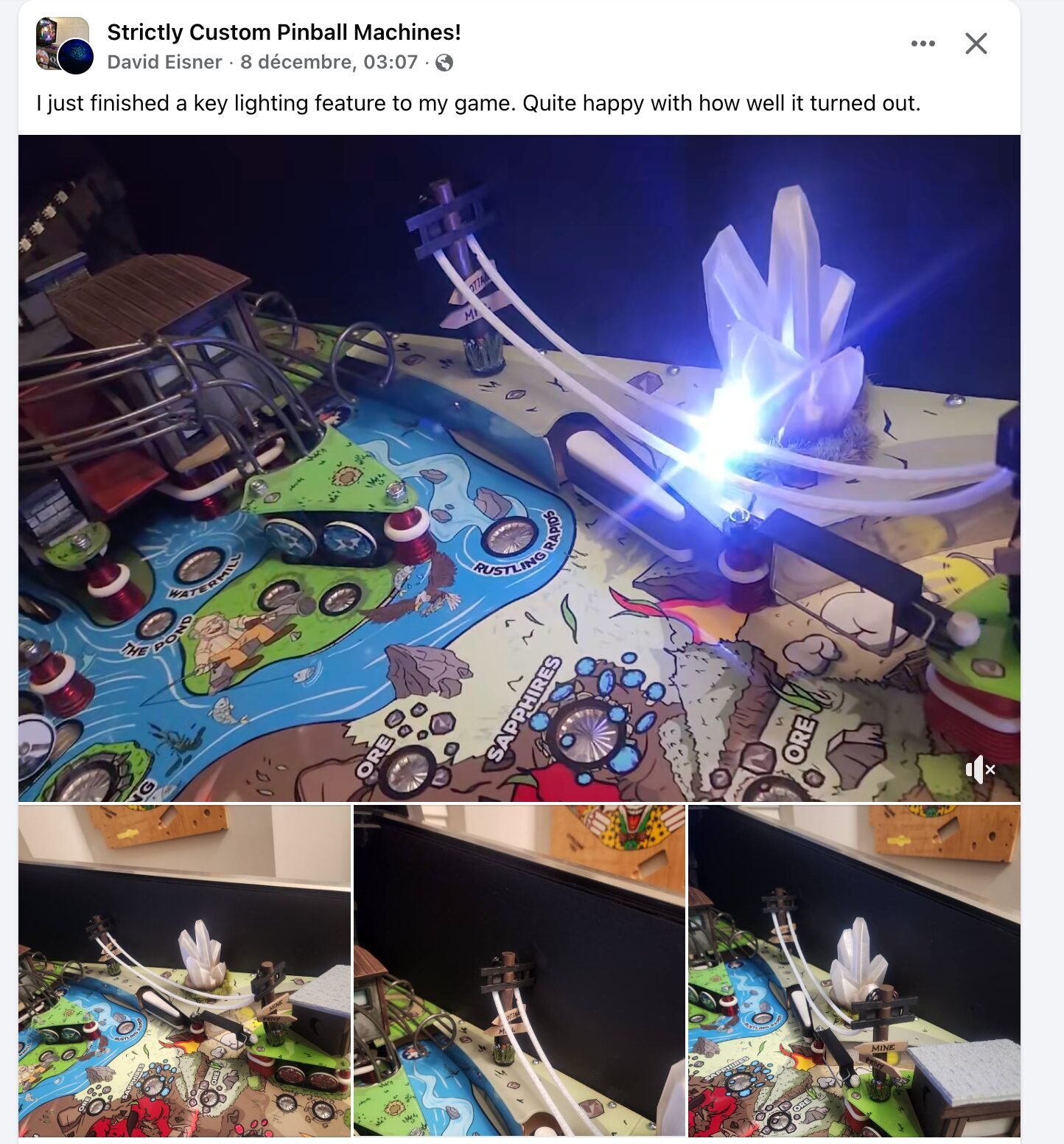 On termine avec une nouvelle machine « Hillbilly Brawl » en cours de finalisation par David Eisner et vue dans Strickly Custom Pinball Machines! avec un effet impressionnant intégré pour représenter des éclairs dans un jeu…. ce serait tellement cool de voir cela pour représenter la foudre dans une machine qui pourrait s’appeler Back To The Future… 😉 ou bien pour illustrer des lignes à haute tension pour un mod dans Gozilla !