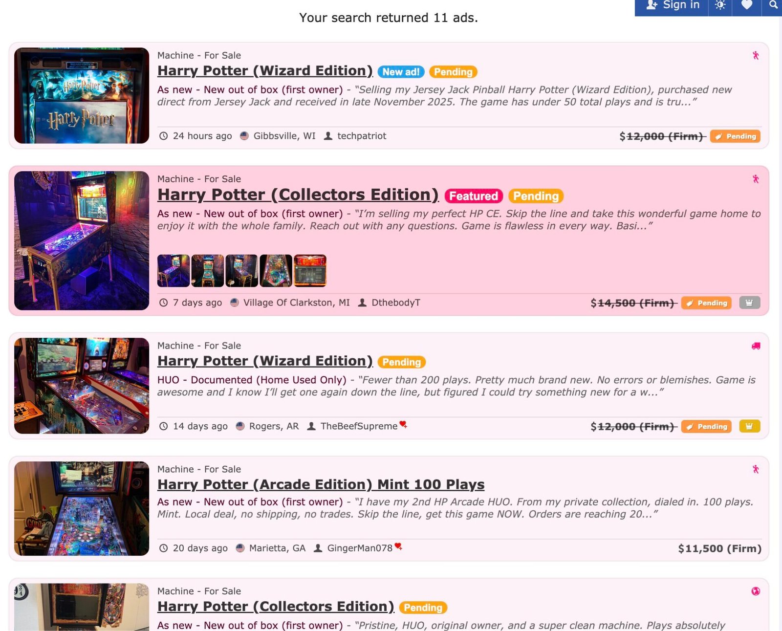 Et on commence même à voir, en toute logique, des machines arriver sur le marché de l’occasion avec déjà 11 machines listées sur Pinside…