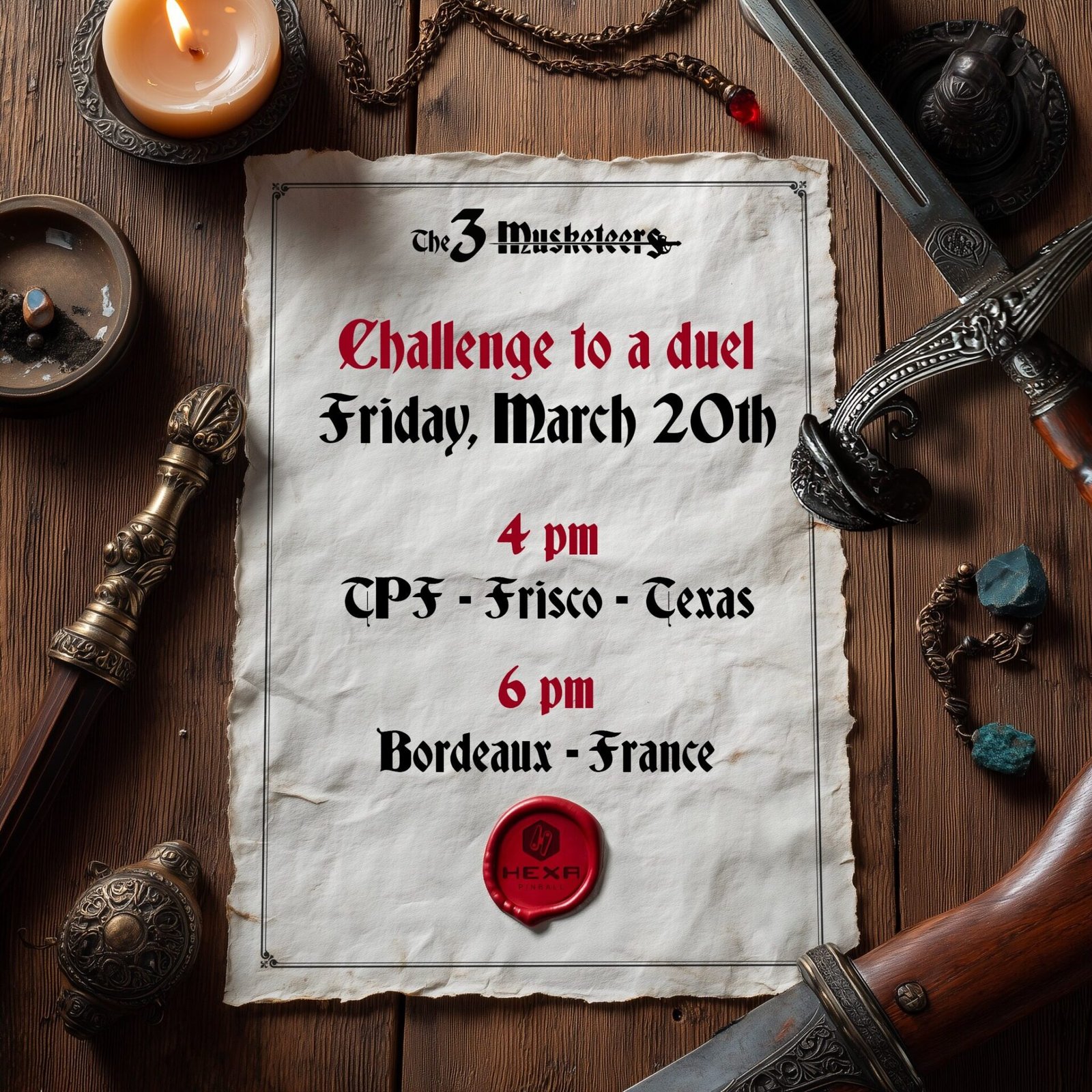 HEXA Pinball nous a offert un petit aperçu de son deuxième flipper à venir, Les Trois Mousquetaires. Le jeu sera officiellement dévoilé au Texas Pinball Festival le vendredi 20 mars et en parallèle à Bordeaux.