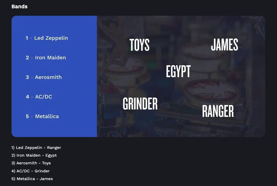 Iron MaidenEgyptUne référence à l’importance de l’imagerie égyptienne typique dans l’art et le design du jeu (la serrure du sarcophage, le Mummy Multiball, etc.).