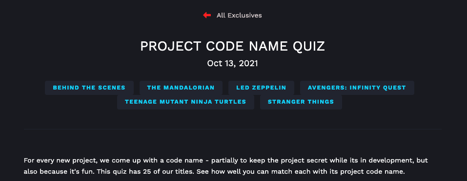 Stern Insider propose un lien vers des informations exclusives, notamment un quiz sur les noms de code des projets dont les réponses sont dévoilées.